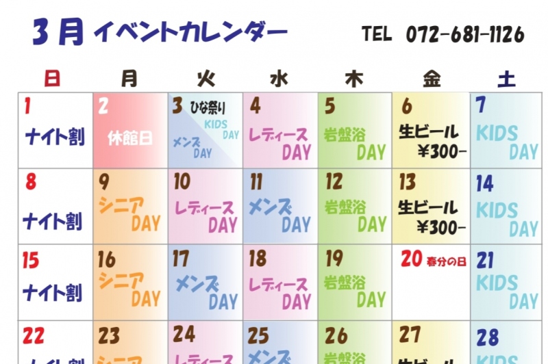 3月イベントカレンダー